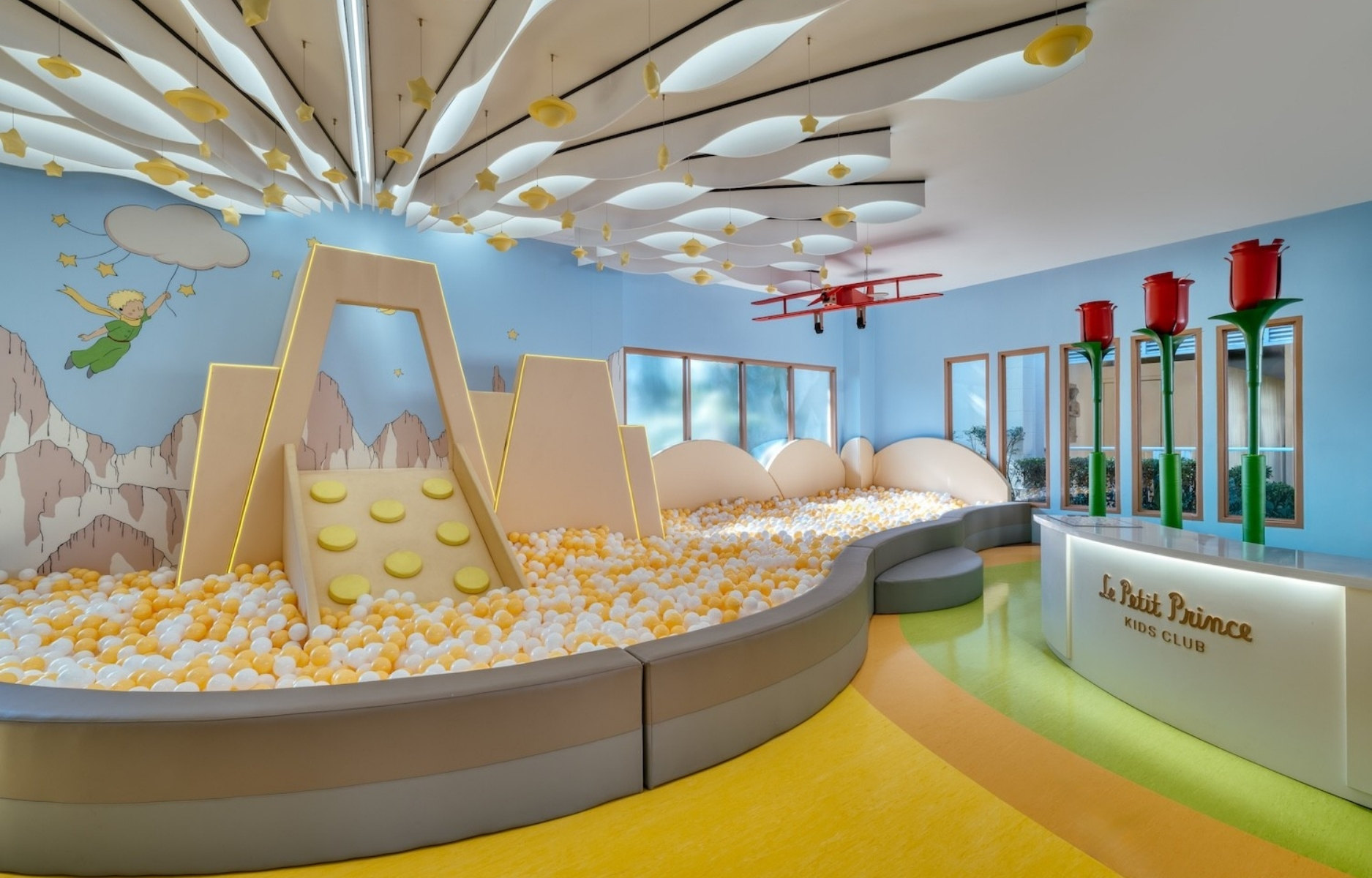 Ouvert tous les jours de 8 h à 18 h, le Kids Club accueille les enfants de moins de 12 ans. Les espaces sont organisés pour répondre aux besoins de chaque âge, avec des zones de jeux adaptées, des espaces de jeux de rôle, une structure intérieure, une salle de cinéma, des coins lecture, des stations numériques et un atelier d’arts et loisirs créatifs ouvert sur les jardins tropicaux.