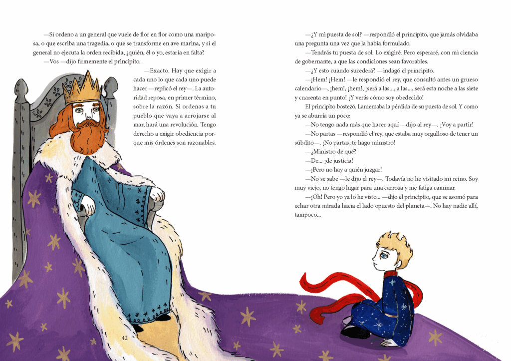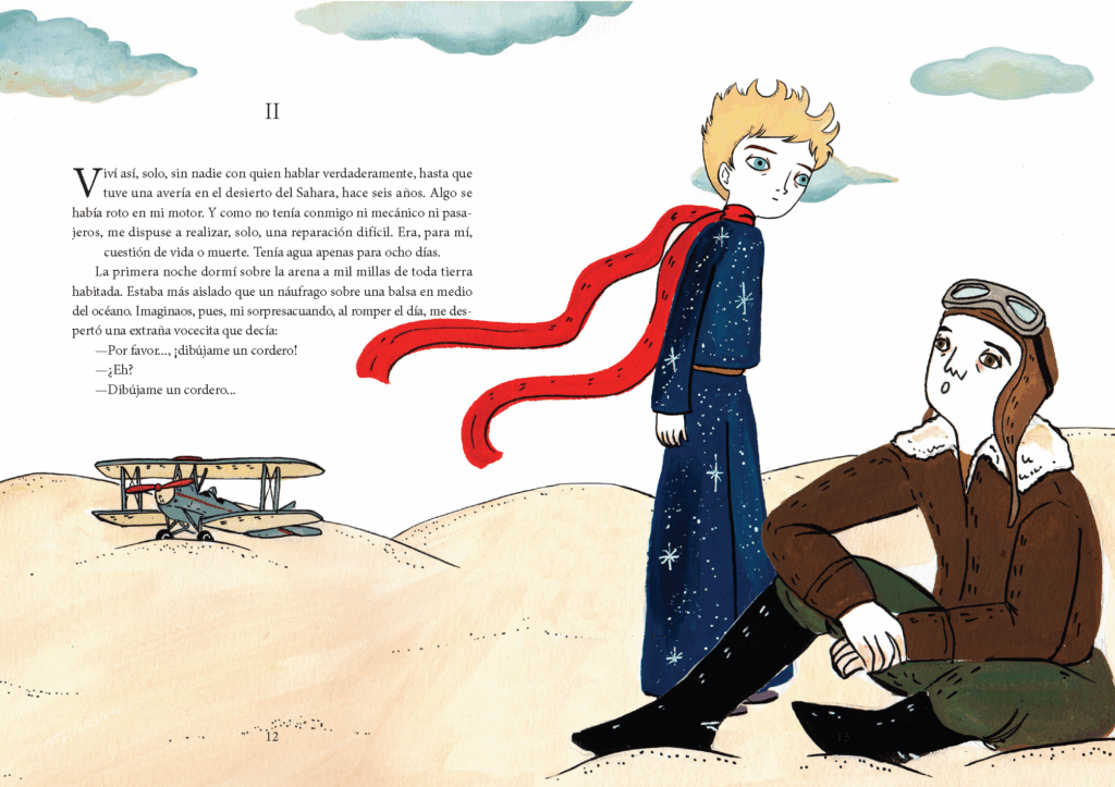 Dans cette édition spéciale, les lecteurs redécouvrent l’histoire qu’ils connaissent déjà… mais comme jamais auparavant. Les thèmes essentiels du récit – l’amitié avec le renard, la responsabilité envers la rose, la quête de sens à travers les différentes planètes – prennent une nouvelle dimension visuelle. Les illustrations de María Hesse apportent une interprétation sensible et personnelle, tout en respectant l’essence poétique de l’œuvre originale.