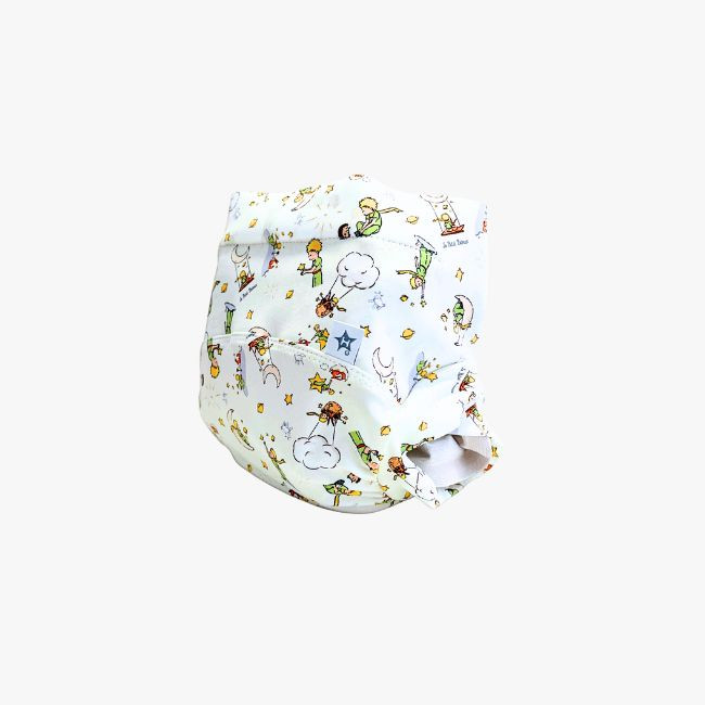 Cette édition Le Petit Prince propose une création douce, durable et poétique. La couche reprend tout le confort signé Hamac. Elle est respirante, agréable et conçue pour durer. Sa construction TE2 permet une réutilisation facile, tout en conservant la partie imperméable lorsqu’elle reste propre. Un geste simple qui résume parfaitement l’esprit Hamac.
