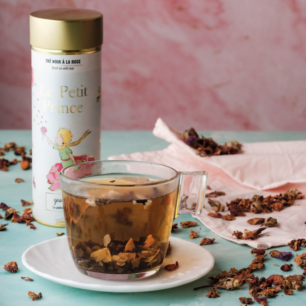 Élaboré à partir d’un thé noir 100 % biologique, parsemé de véritables pétales de rose, ce mélange évoque la tendresse, la fragilité et la beauté de l’essentiel. Son flacon illustré, inspiré des dessins originaux du Petit Prince, invite à la rêverie et à la contemplation, comme une prolongation poétique du livre.